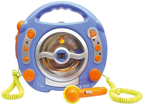Idena 6805350 Kinder CD-Player "SING-A-LONG" blau mit 2 Mikrofonen und LED-Display Feature